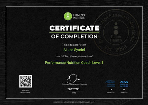• Fitness Institute Performance Nutrition Level 1
